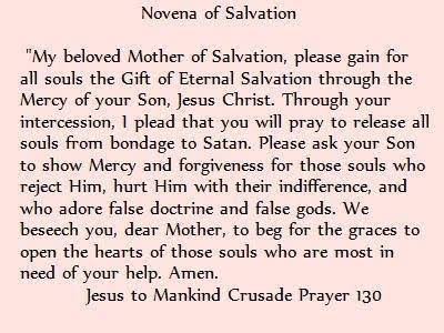 Novena of Salvation Crusade Prayer